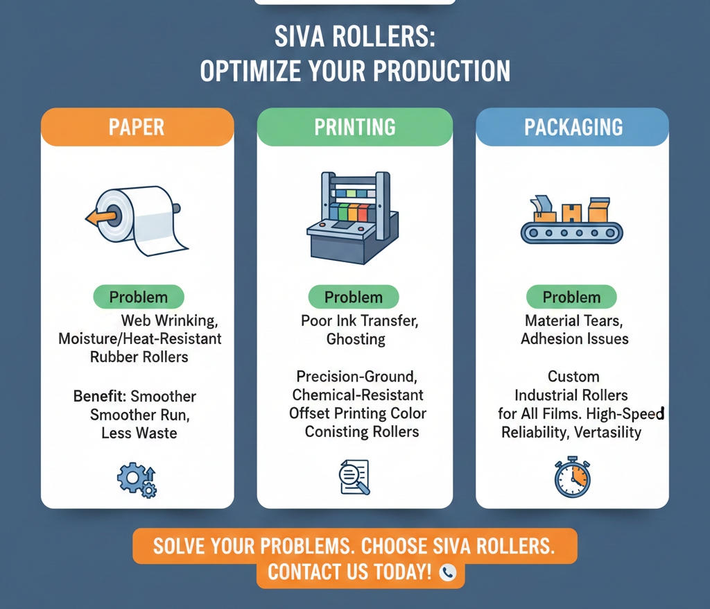 Siva Rollers combines material science, precision engineering, and industry-specific customization. With expertise across paper, printing, and packaging sectors, the company delivers globally compliant rollers engineered for Indian operating conditions, ensuring durability, accuracy, and consistent performance.